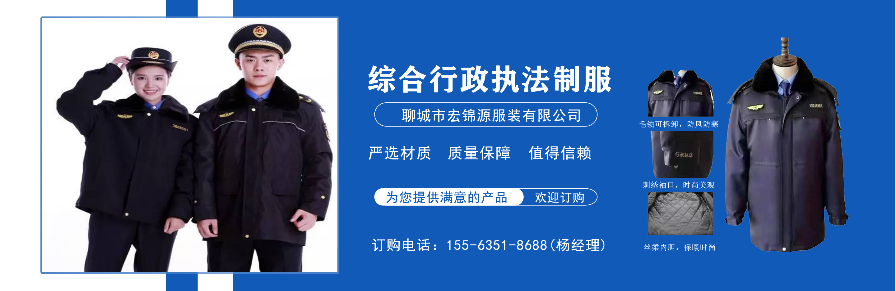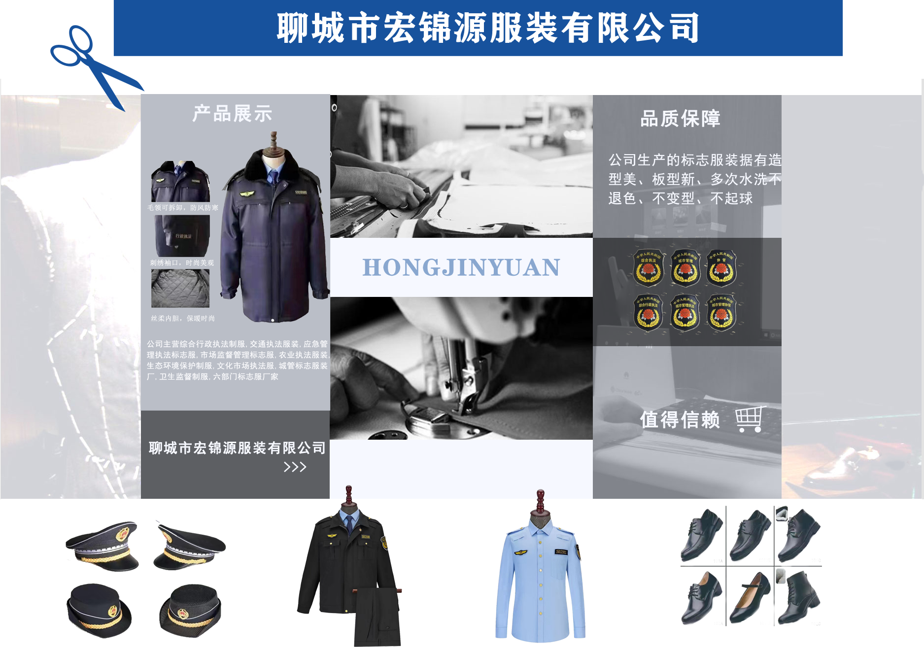 聊城市宏錦源服裝有限公司位于江北水城—山東聊城,地理位置優(yōu)越,交通便利。公司主營(yíng)綜合行政執(zhí)法制服,交通執(zhí)法服裝,應(yīng)急管理執(zhí)法標(biāo)志服,市場(chǎng)監(jiān)督管理標(biāo)志服,農(nóng)業(yè)執(zhí)法服裝,生態(tài)環(huán)境保護(hù)制服,文化市場(chǎng)執(zhí)法服,城管標(biāo)志服裝廠(chǎng),衛(wèi)生監(jiān)督制服,六部門(mén)標(biāo)志服廠(chǎng)家等,值得信賴(lài)! 公司生產(chǎn)的標(biāo)志服裝據(jù)有造型美、板型新、多次水洗不退色、不變型、不起泡。 “認(rèn)真辦事,踏實(shí)做人”是宏錦源的企業(yè)精神,我們的宗旨是:“用服務(wù)與真誠(chéng)來(lái)?yè)Q取你的信任與支持,互惠互利,共創(chuàng)雙贏!”我公司愿與國(guó)內(nèi)外各界同仁志士竭誠(chéng)合作,共創(chuàng)未來(lái)企業(yè)目標(biāo):在已選定的服飾領(lǐng)域中,成為行業(yè)的卓越者?! 〗?jīng)營(yíng)理念:追求產(chǎn)品卓越,為用戶(hù)提供完美、高效的服務(wù)。...